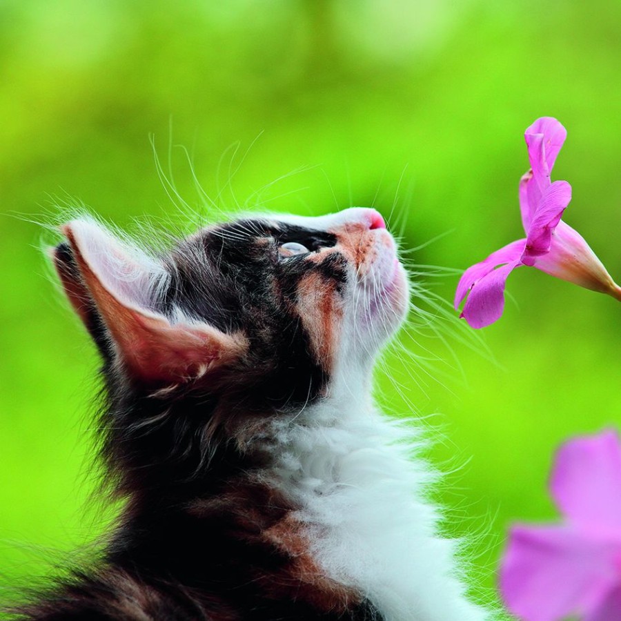 Ευχετήρια Κάρτα Διπλή 16x16 Γατάκι Μυρίζει Λουλούδι Pictura