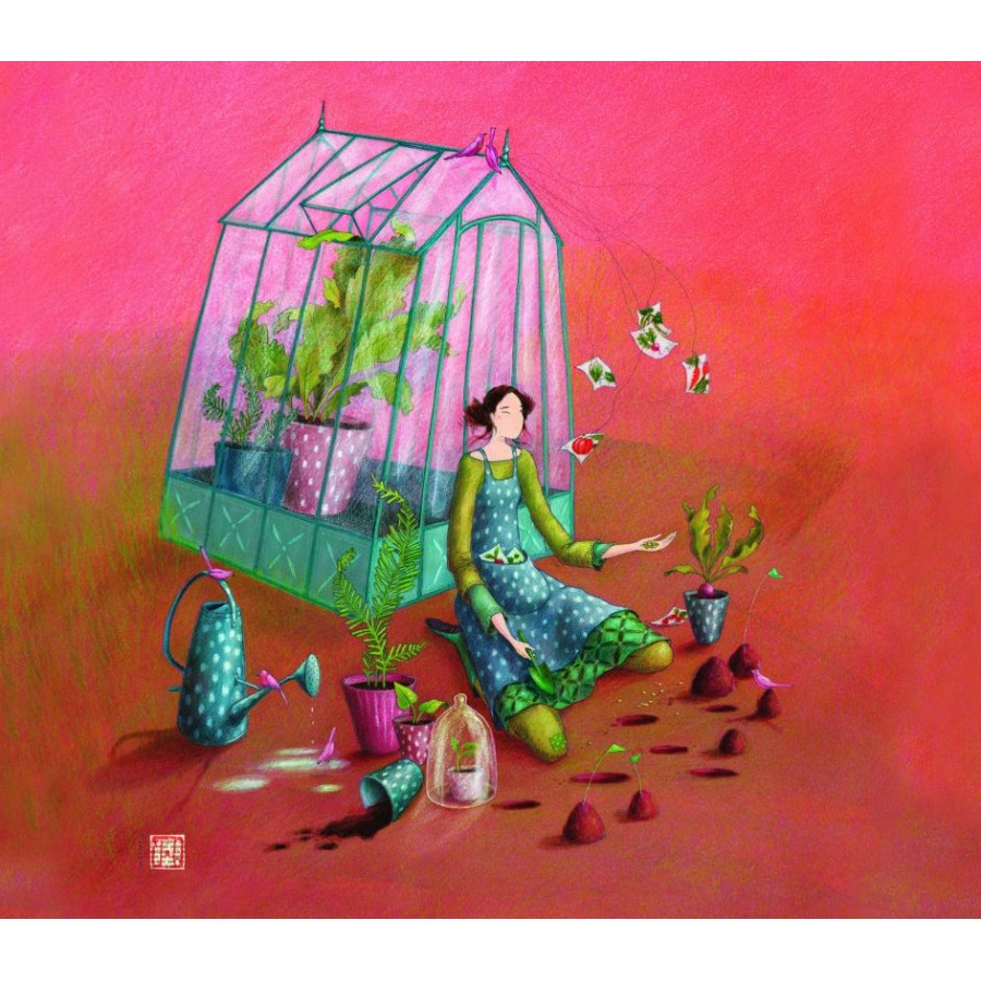 Ευχετήρια Κάρτα Διπλή 10,5x21 Γυναίκα Στο Θερμοκήπιο Pictura
