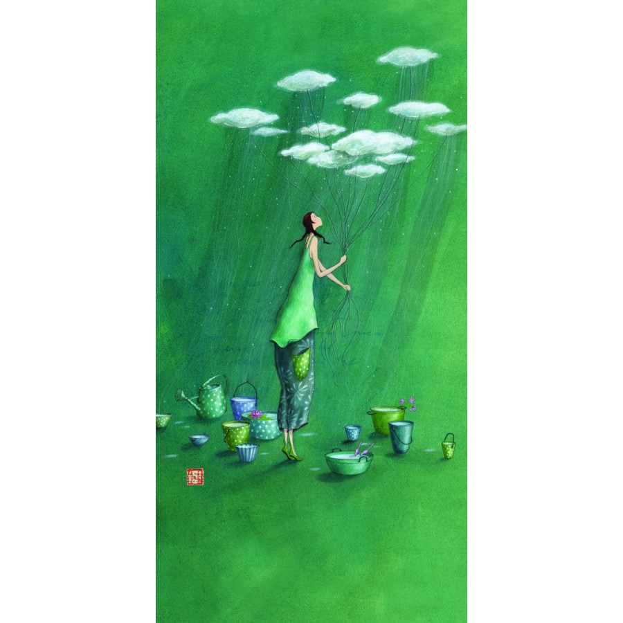 Ευχετήρια Κάρτα Διπλή 10,5x21 Γυναίκα Με Συννεφάκια Pictura
