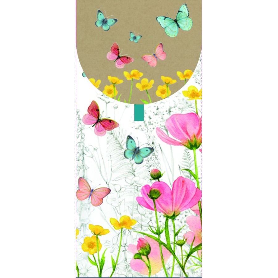 Ευχετήρια κάρτα μπιλιετάκι με λεπτομέρειες από θερμοτυπία, glitter, κορδέλλα, ανάγλυφο και λευκό φάκελο.