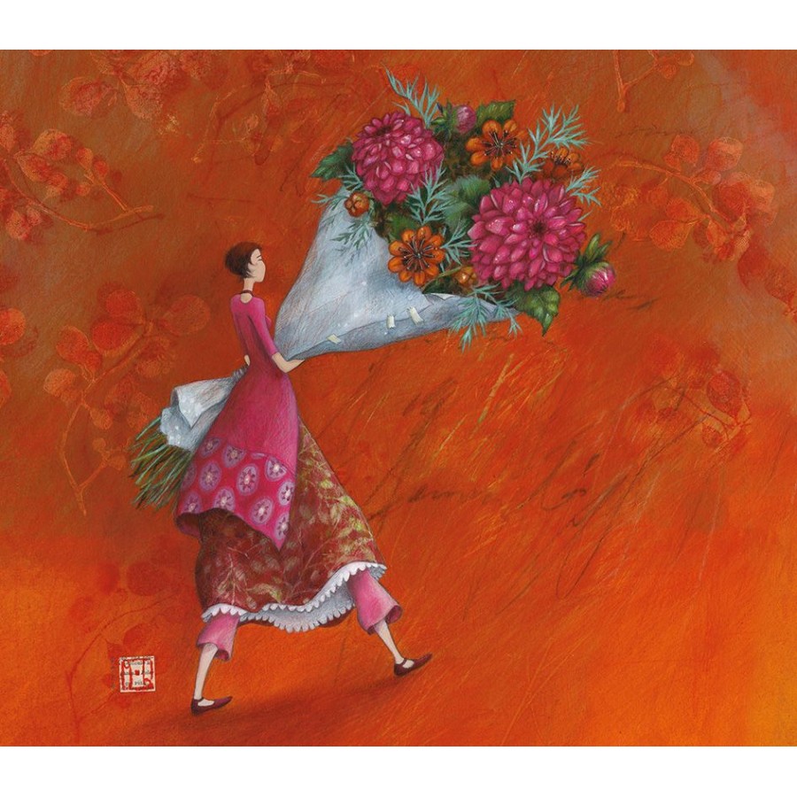 Ευχετήρια Κάρτα Διπλή 10,5x21 Γυναίκα Με Μεγάλο Μπουκέτο Με Λουλούδια Pictura